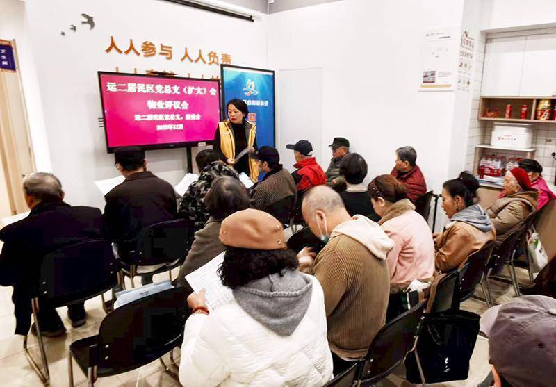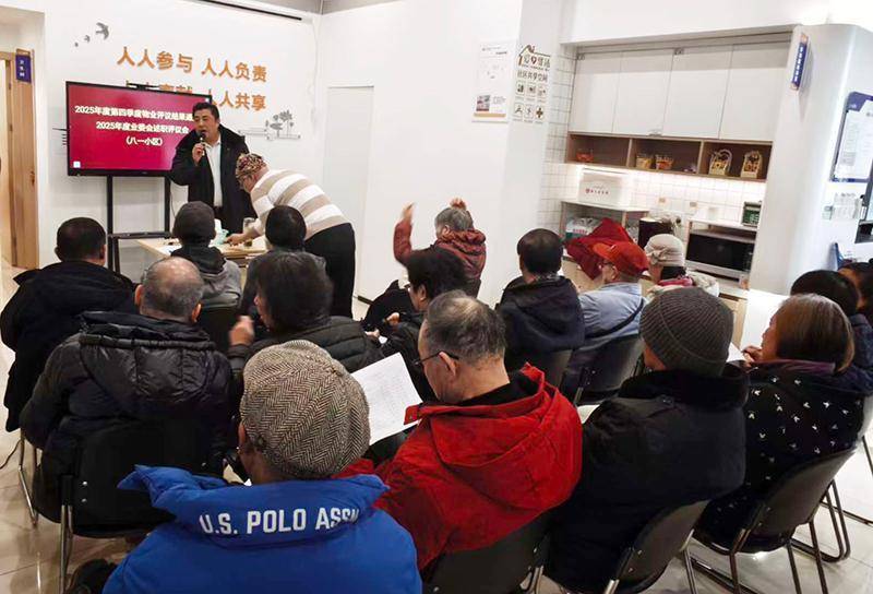 2023年底,这一制度在运二居民区先行先试。从最初“怕失控、怕吵架”,到如今每季度评议常态化、流程规范化,一套“党组织牵头、居民做主、物业述职、公开评议”的模式逐渐成型。大会上,物业经理现场述职,亮成绩、摆问题、说计划;居民代表、业委会成员、社区党员当场打分、匿名测评,保洁、保绿、保修、保安、设施维护五大项,件件关系大家的切身感受。