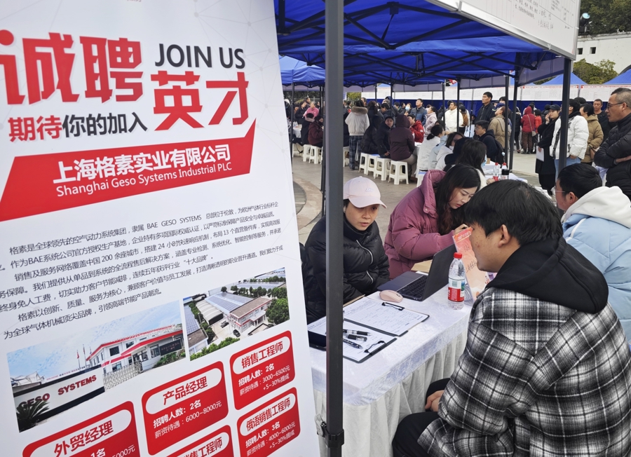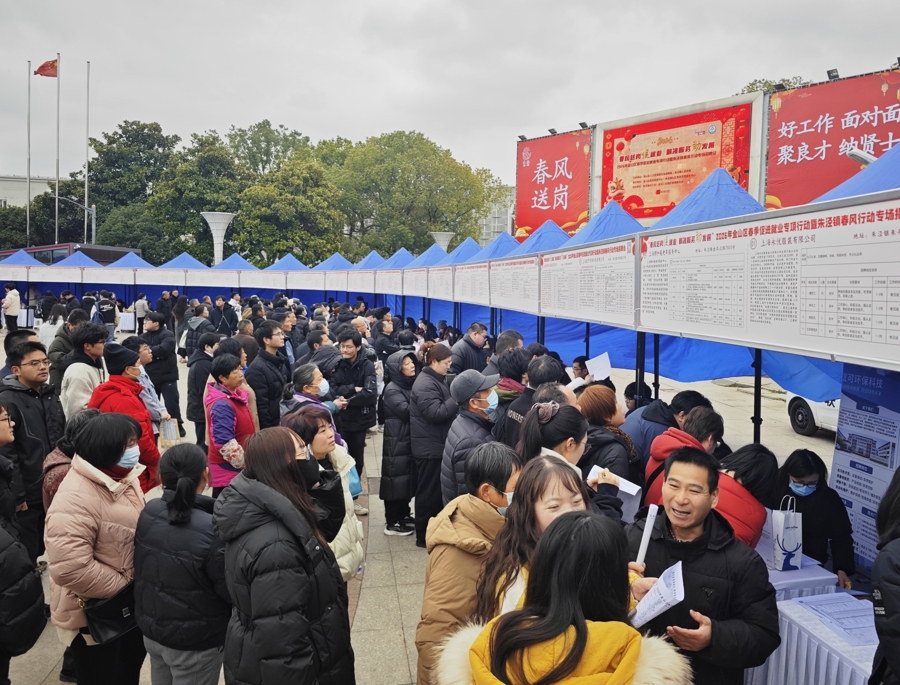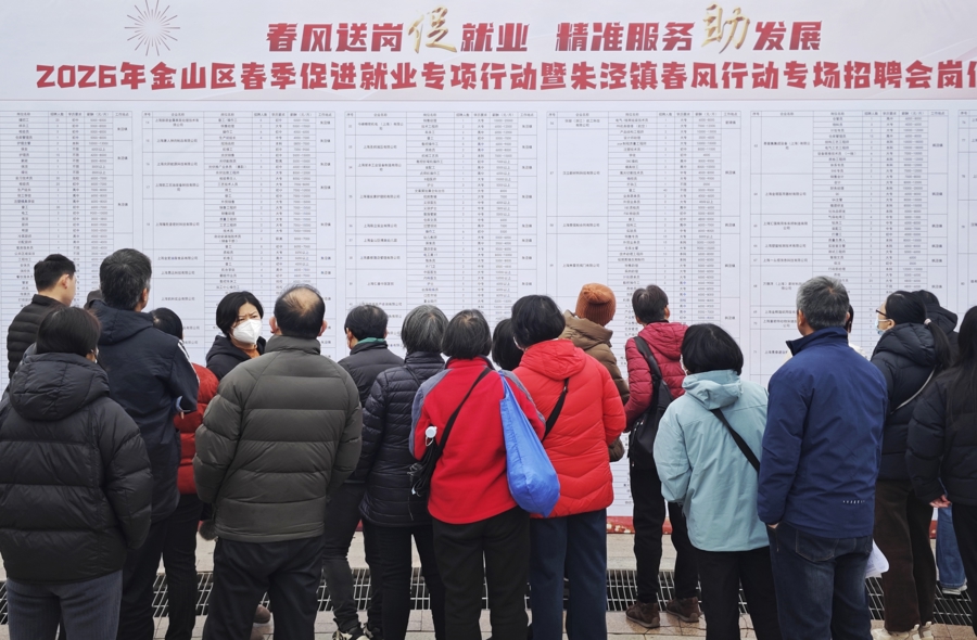 3月3日,“春风送岗促就业 精准服务助发展”2026年金山区春季促进就业专项行动暨朱泾镇春风行动专场招聘会在紫金广场举行。